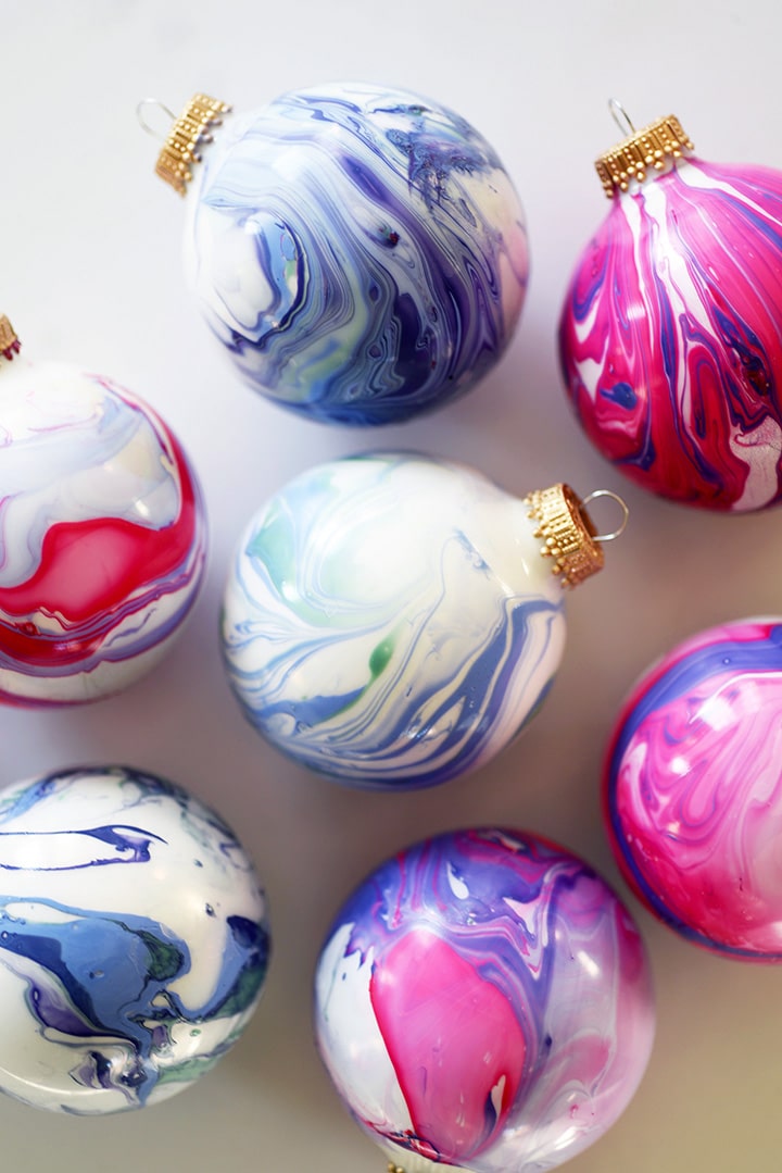 One more week until we head home to the Midwest to celebrate the holidays with family. Feeling like I have a lot of shopping and making to do still. With Poppy’s birthday in mid-December, I focus on that first, then I get in instant Christmas mode! We’re making dozens of sugar cookies today for some cookie decorating with friends tonight. Calla and I made these colorful marbled ornaments the other day. So easy, and so pretty!