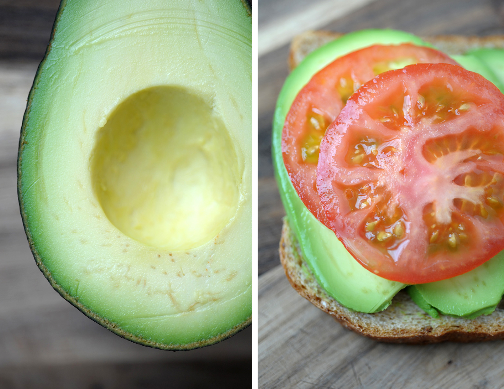 Avocado and Tomato on Toast Sprouted grain bread such as Ezekiel by Food For Life toasted with avocado and tomatoes on top.  Season with sea salt & pepper and/or fresh basil.