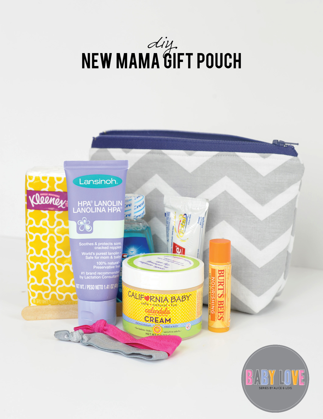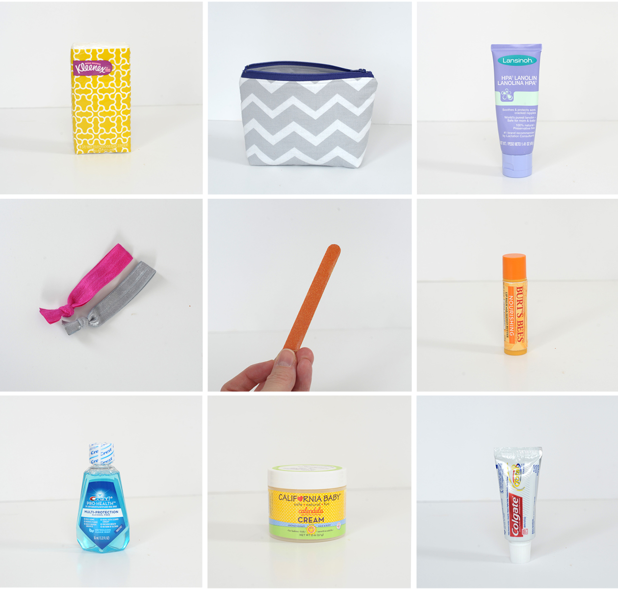 We always want to give the sweet mama-to-be a gift before delivery and this has become our go-to collection of goodies we know she will use. It’s a perfect new mama gift pouch to take to the hospital or have at home for when the baby is so little. These are all helpful items in those early days. Tissues help with those tears of joy, hair ties help you get that hair out of your face when nursing, and lanolin for those sore nipples. And the mini toothpaste and travel size mouthwash are perfect for the hospital.