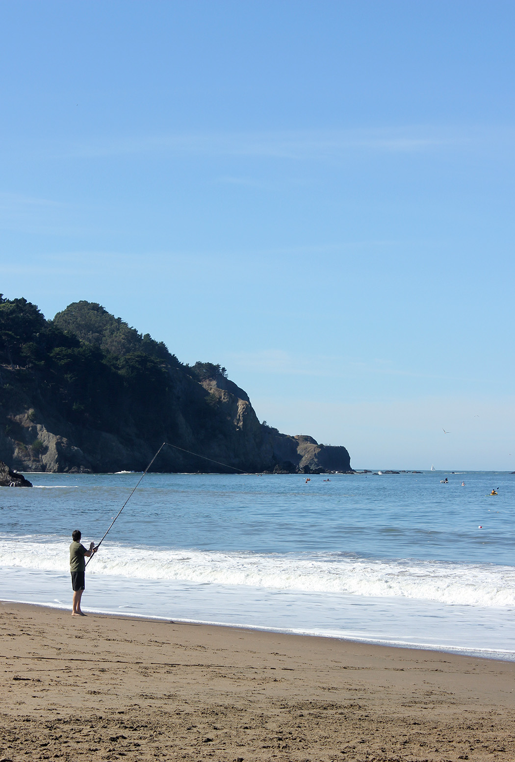 Baker Beach was packed with crab fisherman yesterday as the swell was too big Saturday for an Annual Crab Derby. Our guys did not participate in the Derby, but it was fun to watch.