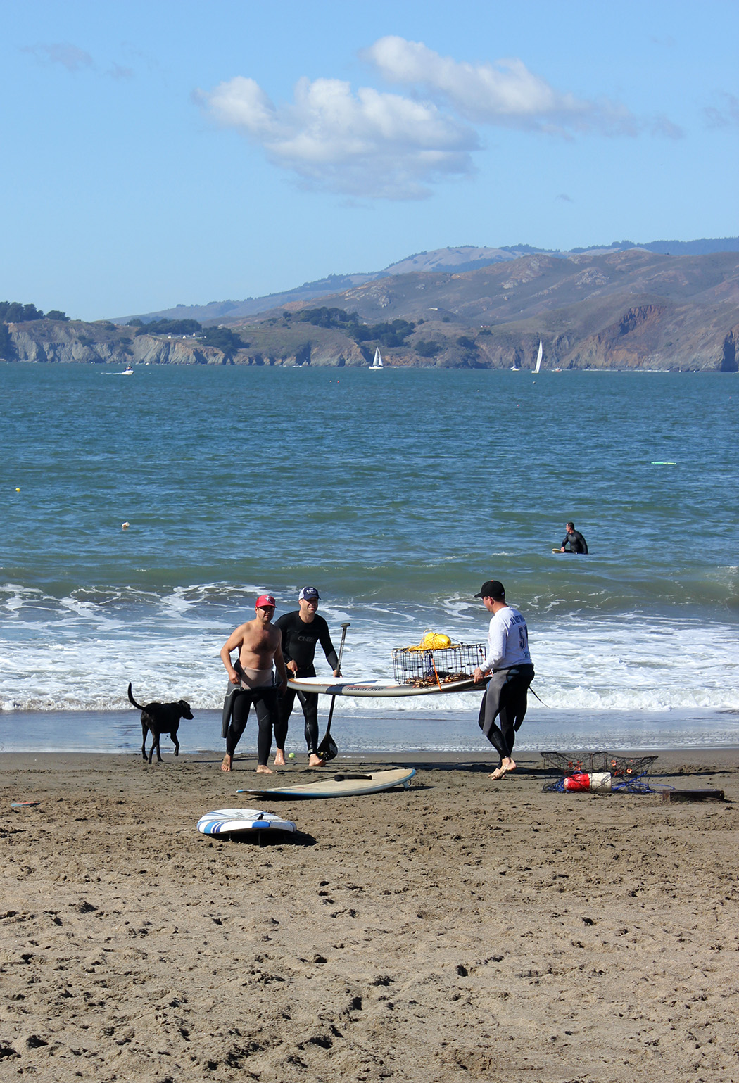 It is Crab Season in San Francisco! We spent all day yesterday at Baker Beach in San Francisco with friends – certainly the best way to usher in November. This past weekend was opening weekend and our third season out there. I say “our” but I really should say “their.” My husband, Ty and some good friends have enjoyed crab fishing for the last few years. Their preferred method is paddling the traps out on their surf boards. Can’t get anymore West Coast than that!