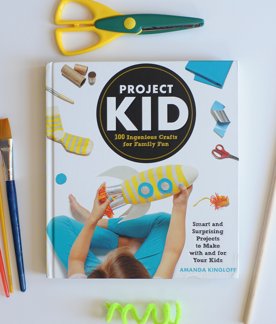 We’re so happy to have a giveaway today with Amanda Kingloff’s new book, Project Kid: 100 Ingenious Crafts for Family Fun. This book is chock-full of crafts for kids. Amanda is the former lifestyle director at Parents magazine who brings tons of experience and knowledge of kid crafting to this book.