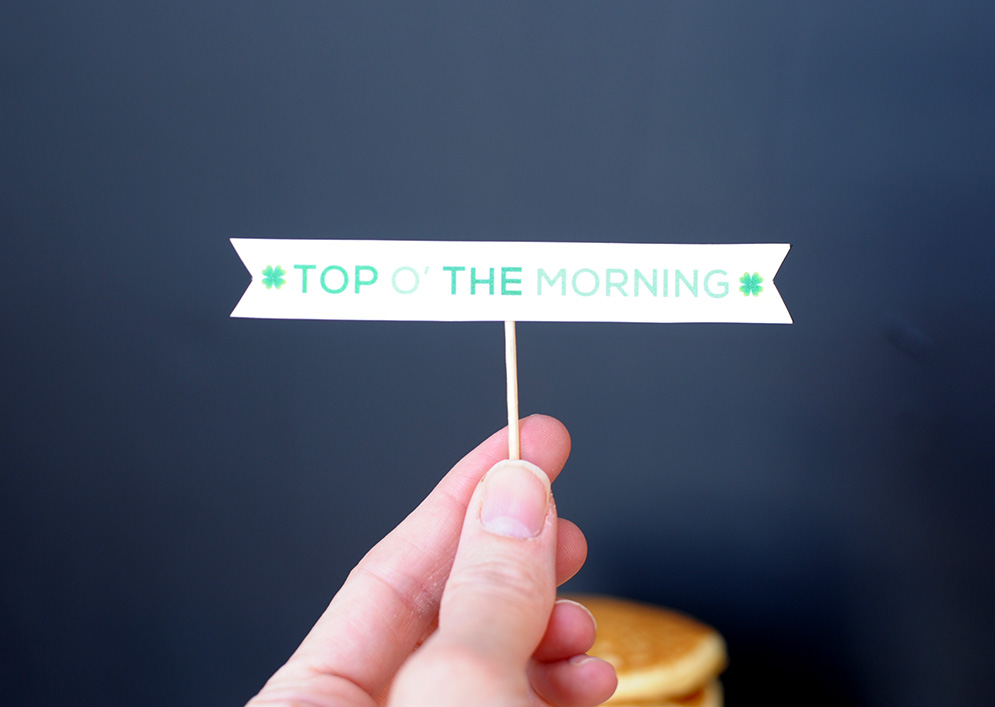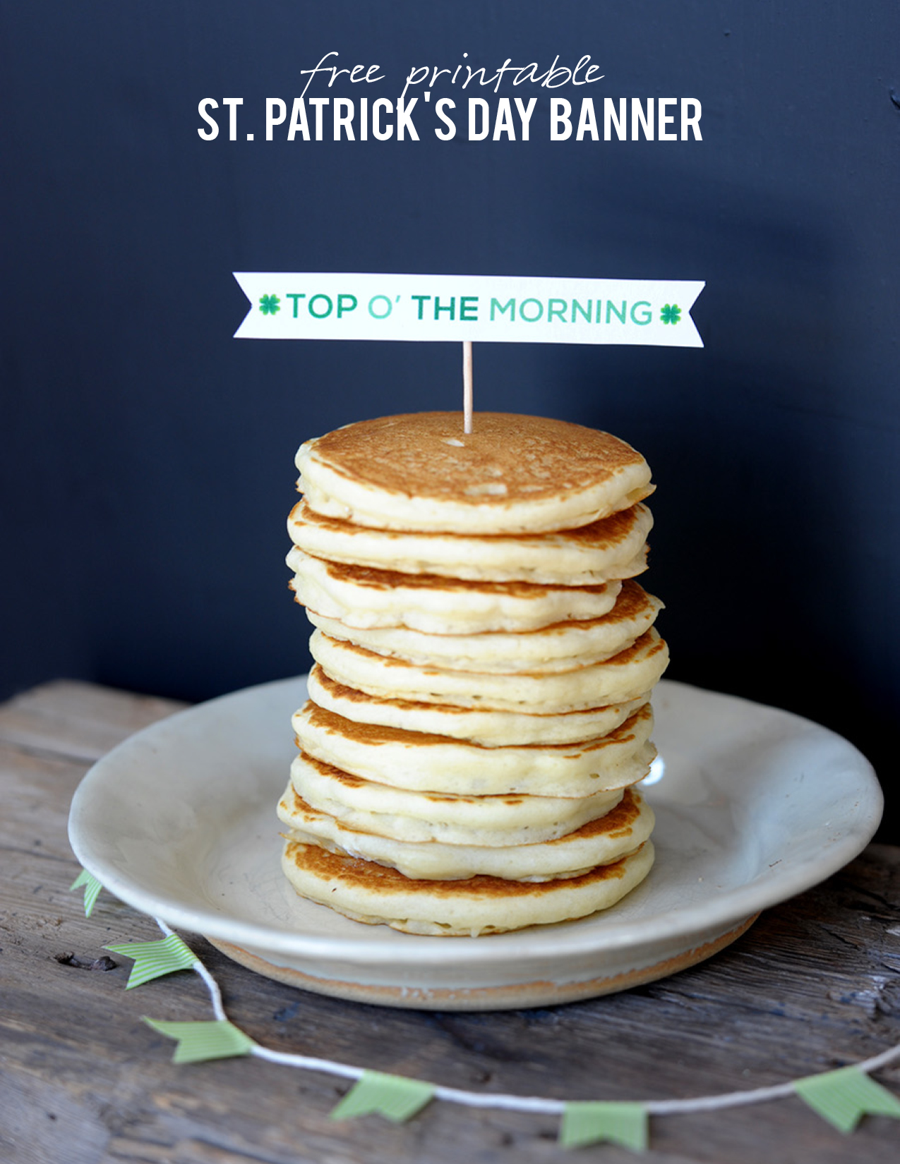 Here’s a fun way to wake up on St. Patrick’s Day, a free printable banner that reads “Top o’ the Morning!” We made some silver dollar pancakes for the kiddos.