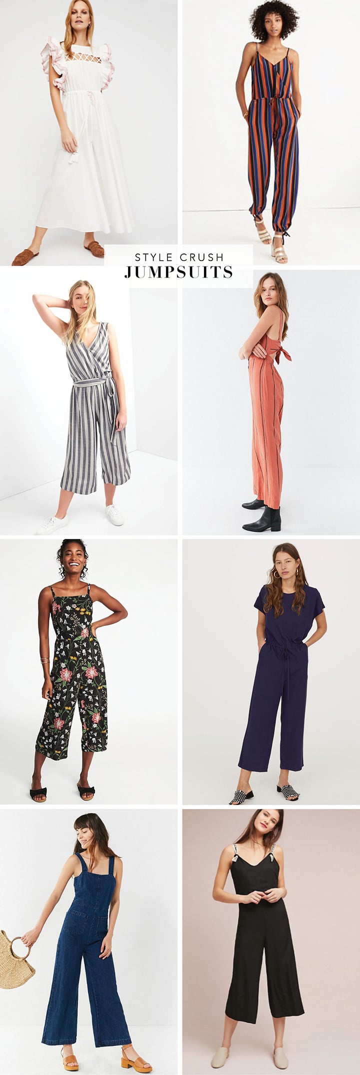 As the weather gets a little bit warmer, we have to admit we’re in the market for a new jumpsuit or two! They are so easy to wear, easy to dress up or down. Throw on some booties, sneakers or clogs and you are set. We’ve put together some of our favorite jumpsuits in this Style Crush. From denim to big flower prints to good ole stripes, there are so many great looking jumpsuits this time of year.