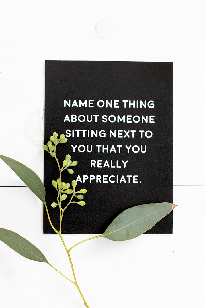 Or the game could be a wonderful activity to do after the big dinner. Pass the cards around or just display on the table and have each guest pick a card.