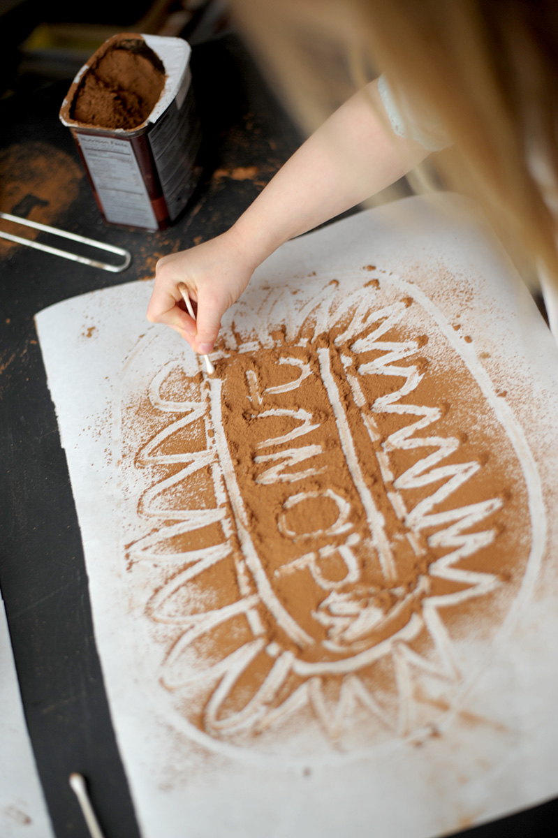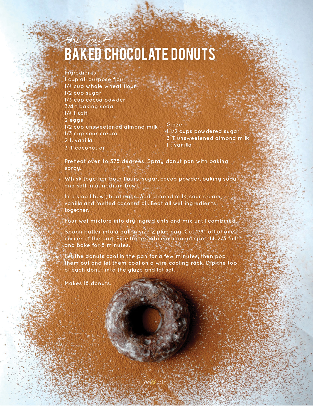Calla was my baking assistant and my project assistant. When we were putting the cocoa powder on the parchment paper to take pictures, she said, “Mom, I have a great idea…” Here’s her donut picture… what a girl! Have fun making these sweet treats. –Melissa
