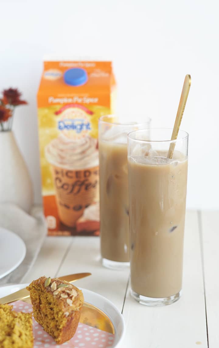 Mornings in the fall are meant for homemade baked goods and big cups of coffee. But some fall mornings are not quite sweater weather days and that means iced coffee! The new International Delight Pumpkin Pie Spice Iced Coffee is perfect for those warmer fall days. I don’t know what it is about iced coffee, but it feels like and tastes like such a treat.