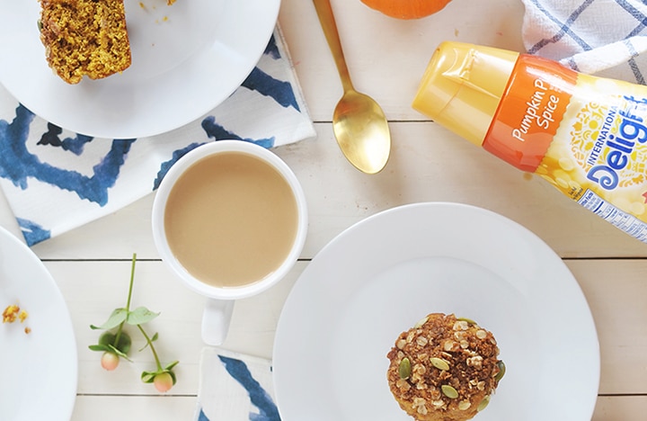 We’re working with International Delight today to share the Best Pumpkin Muffin Recipe that celebrates fall and pairs perfectly with their Pumpkin Pie Spice coffee creamer and their new Pumpkin Pie Spice Iced Coffee.