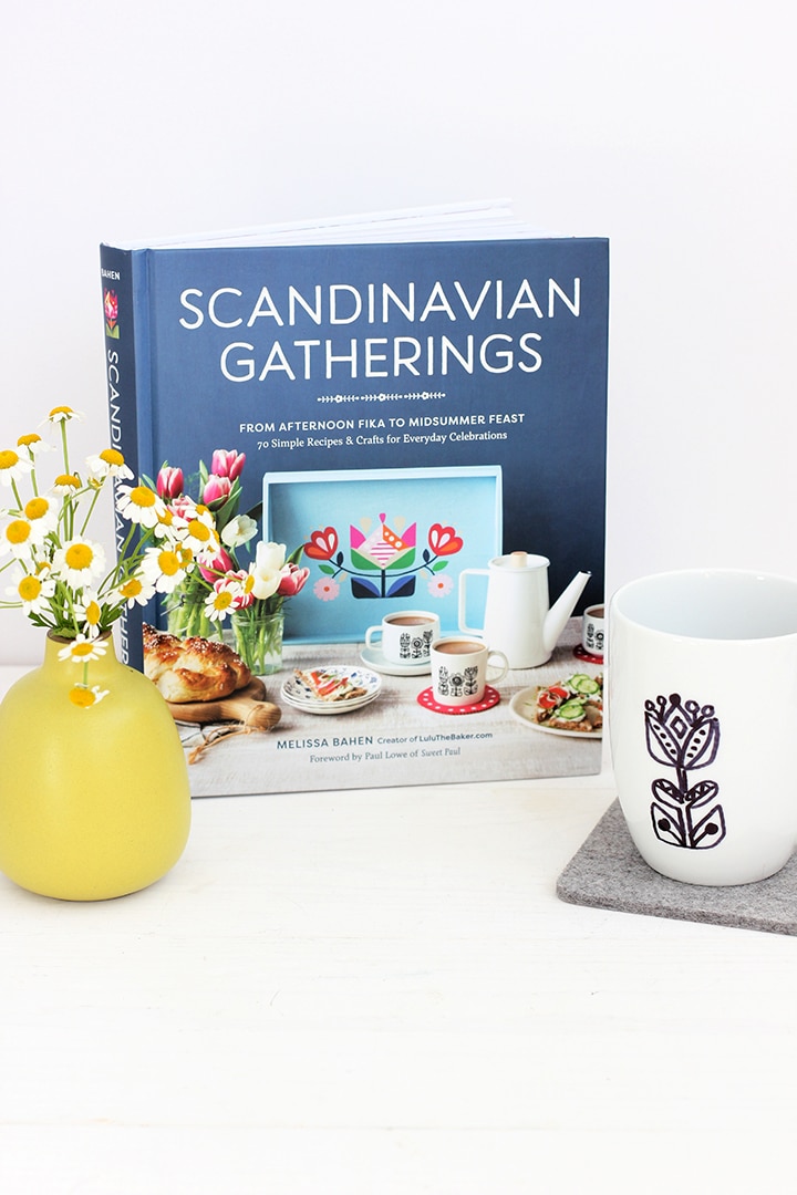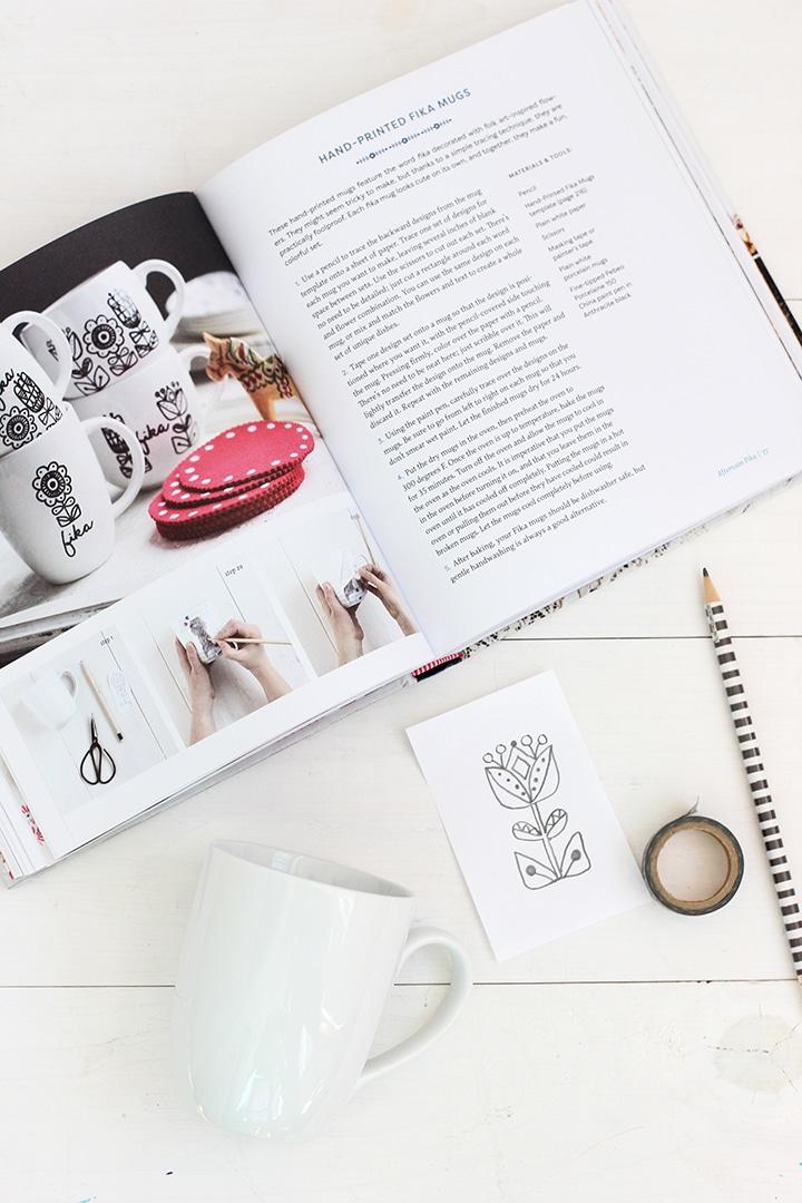 She includes some amazing recipes in her book – we cannot wait to try Mom’s Maple Pecan Rings, the Nutella Swirl Crumb Cake and the Lucia Buns. We have added some new crafts on our “To Make” list, like her Floral Folk Art Serving Tray, Tiny Star Wall Hanging and the Wheat Wreath. I made a new coffee mug for myself using her instructions for the Hand-Printed Fika Mug. I loved how it turned out.